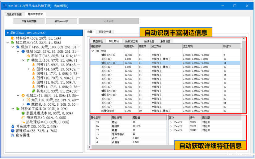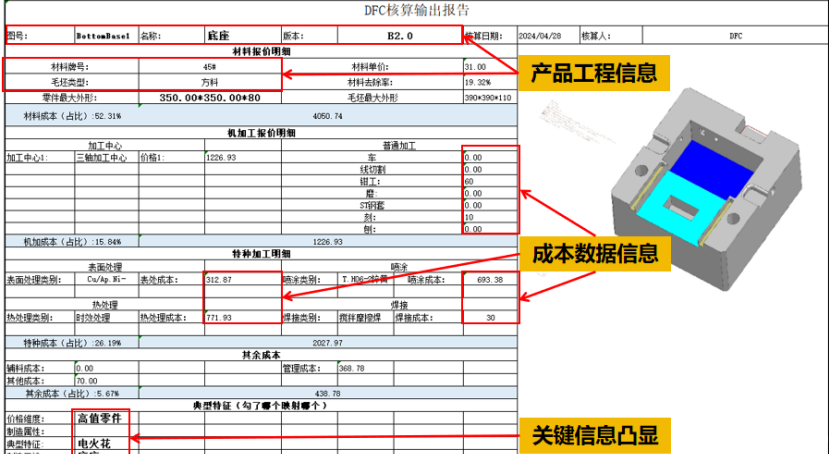 betway官网3DDFC 是一款基于 MBD 模型和工艺知识库的专业三维制造成本分析与估算软件,在不依赖详细工艺路线的情况下,根据零件几何信息和精度信息一键式完成成本估算。该软件充分融入“并行工程”的关键思想,并基于betway官网的三维设计模型特征识别技术,以及零件加工成本计算模型,能快速获得相对准确的加工成本。为面向成本的设计优化提供参考指引,也为企业对外产品报价或产品外协件采购价格提供量化依据,实现降本增效。