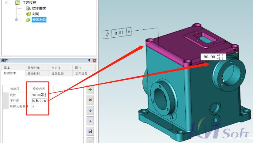 为进一步提高编排效率,节约时间成本,3DAST 13.0新增PMI独立展示、检测要求自动填写功能。用户通过点选模型中尺寸标注、文本等PMI信息,自动填入检测要求属性内,同时还可以通过一键式操作方式,提取模型中所有PMI属性。