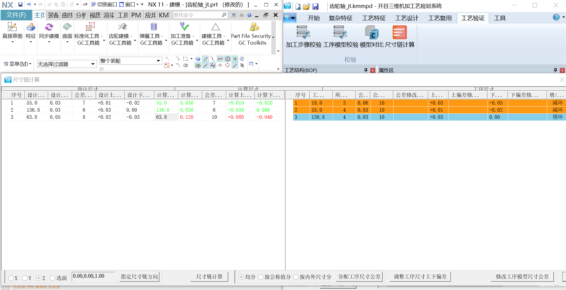 ▶ 基于PMI标注的尺寸链计算。基于模型上标注的PMI信息以及加工余量,对全工序模型进行封闭环、增环、减环的定义,进行尺寸链解算,构建尺寸链图。可验证工序尺寸链,计算尺寸其公差是否符合设计尺寸公差要求,帮助验证、分析及避免工序尺寸公差错误,保证零件质量。