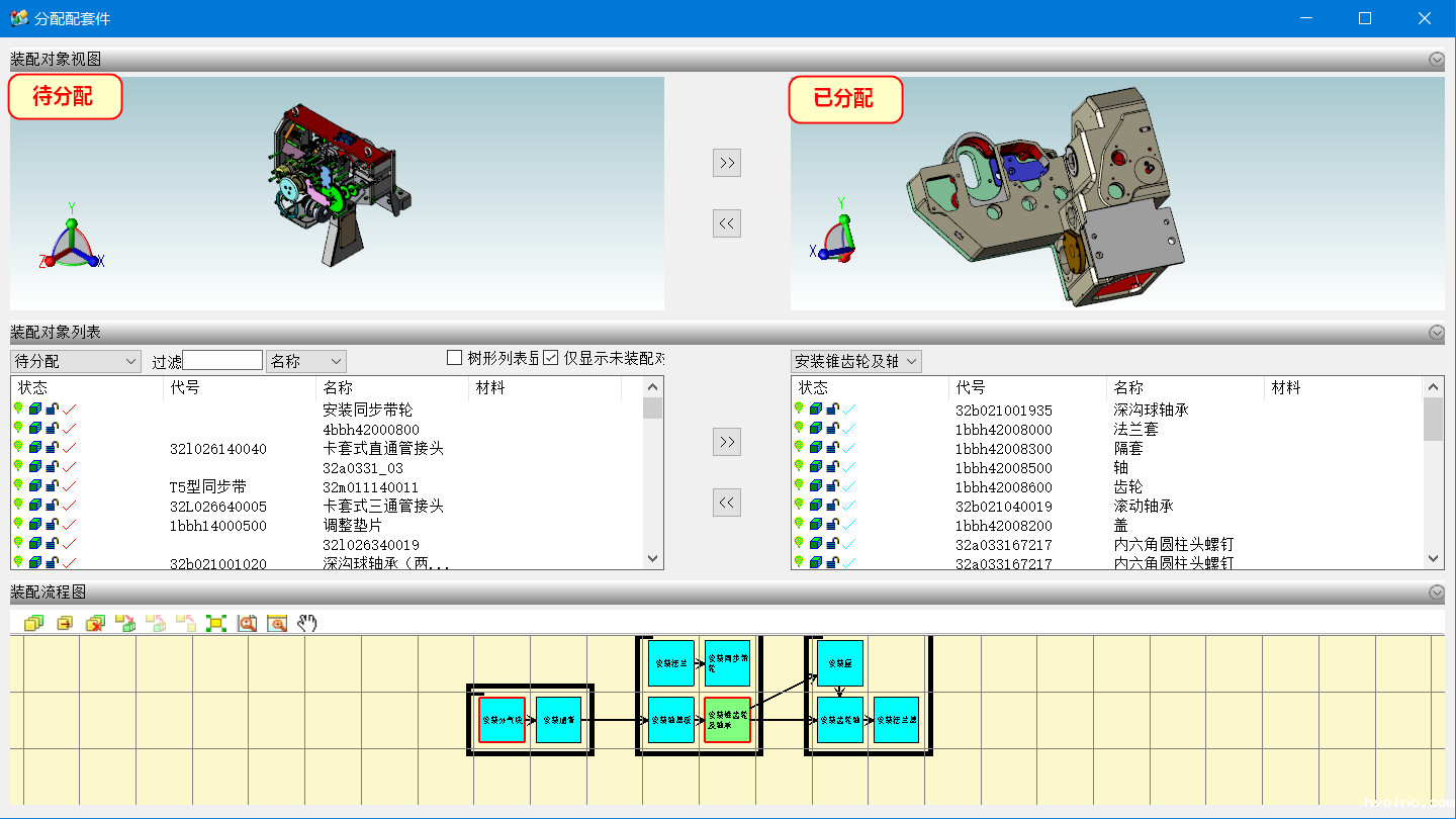 装配过程规划是三维工艺设计的重要内容,主要包括装配顺序、装配节拍、装配路径、制造资源规划、装配过程仿真验证等,通过合理的装配结构规划、方法规划、节拍规划、路径规划等,实现产品整个装配过程的最优工艺规划,其优劣直接影响到产品可装配性、装配质量、装配效率和装配成本。