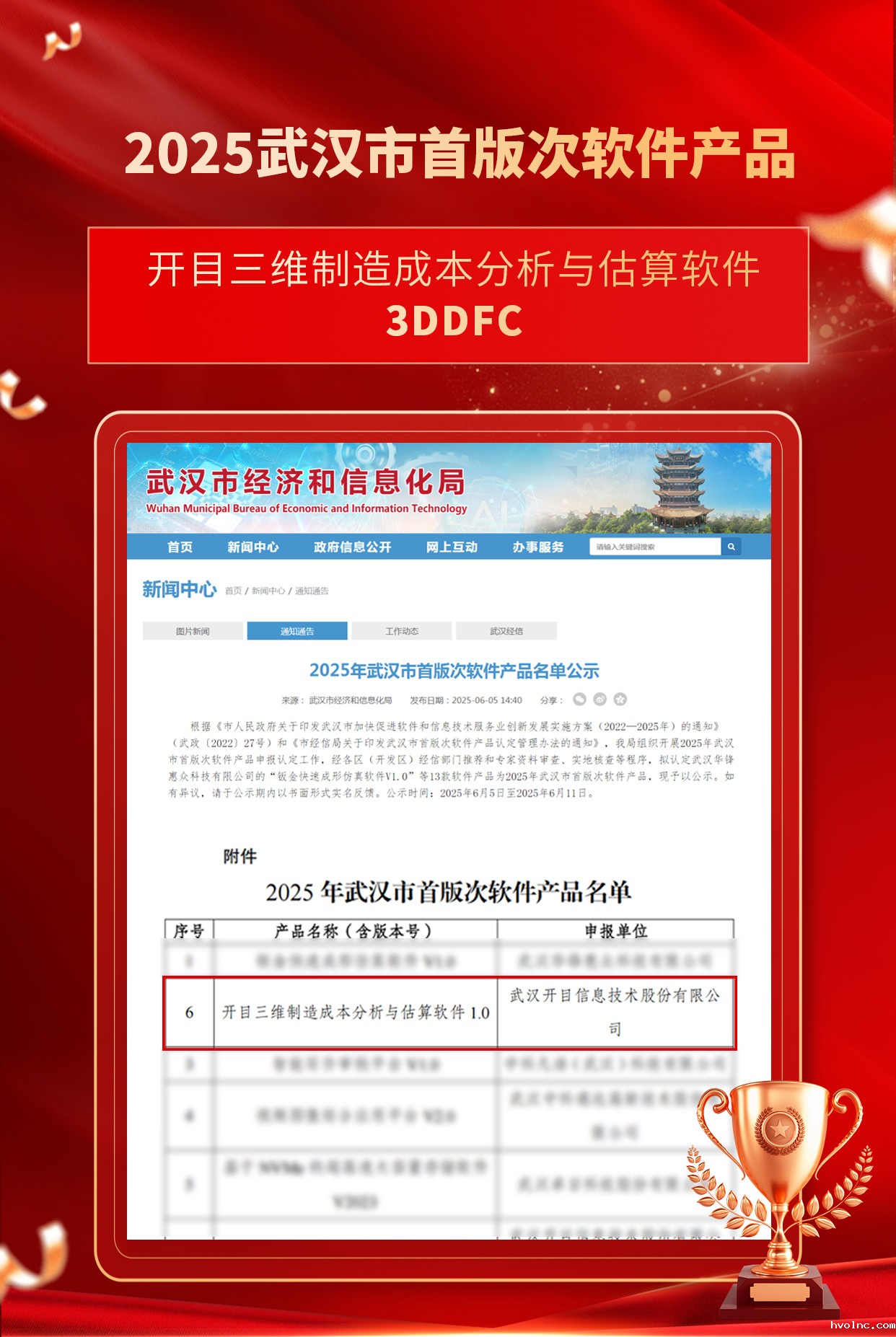 近日,2025年武汉市首版次软件产品名单正式公布,经武汉市经济和信息化局严格评审,betway官网软件自主研发的“三维制造成本分析与估算软件3DDFC”凭借领先的技术实力、成熟的市场落地与完善的自主知识产权体系,成功入选。