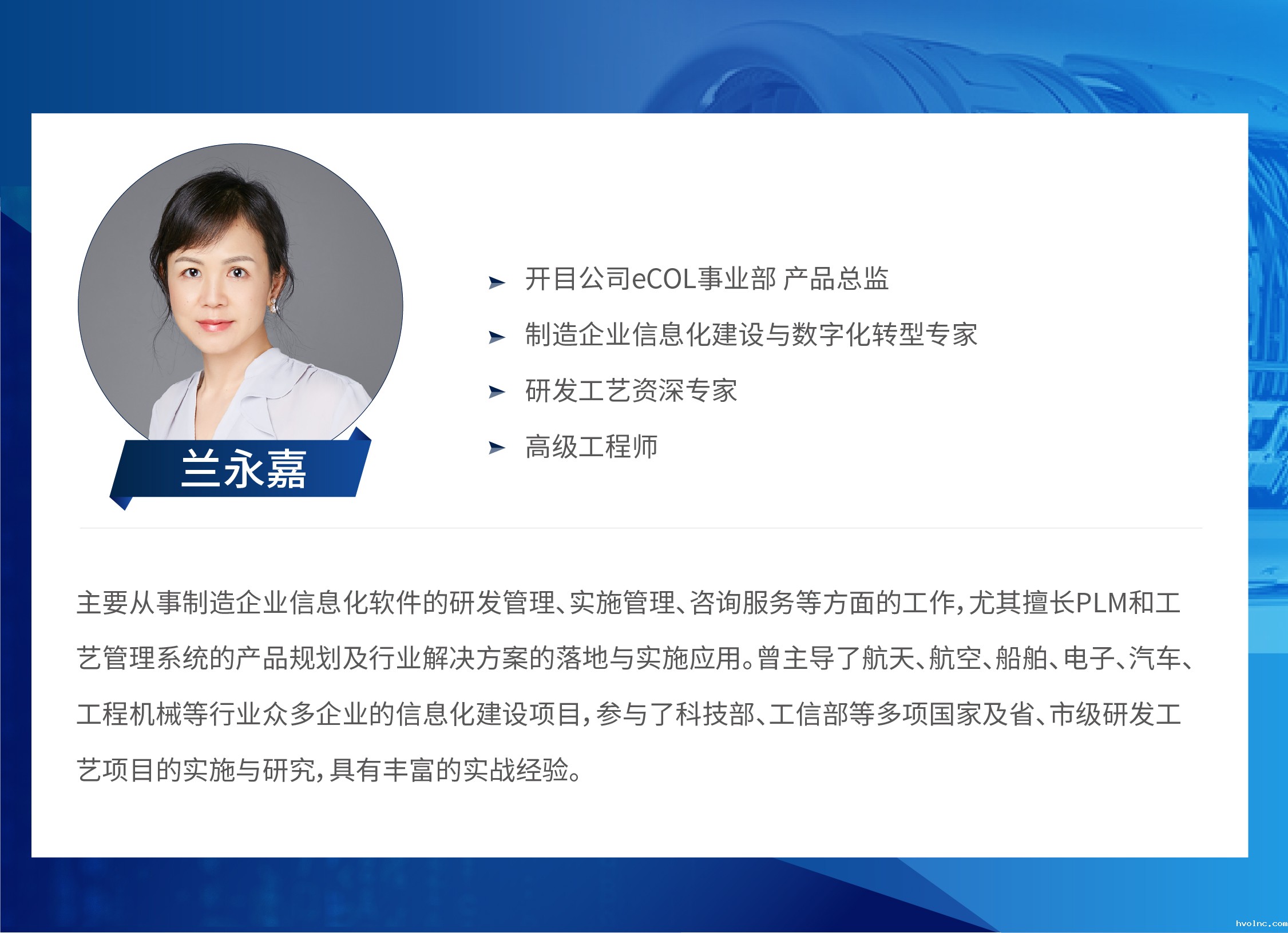 本期研讨会特邀betway官网公司eCOL事业部产品总监兰永嘉女士、东风德纳车桥有限公司制造信息化专家赵中军先生、高德红外工艺信息化专家施群先生做客betway官网线上直播间,专家将全程在线答疑,与来宾深入探讨betway官网“研发工艺协同”的优势特点与实际落地应用。