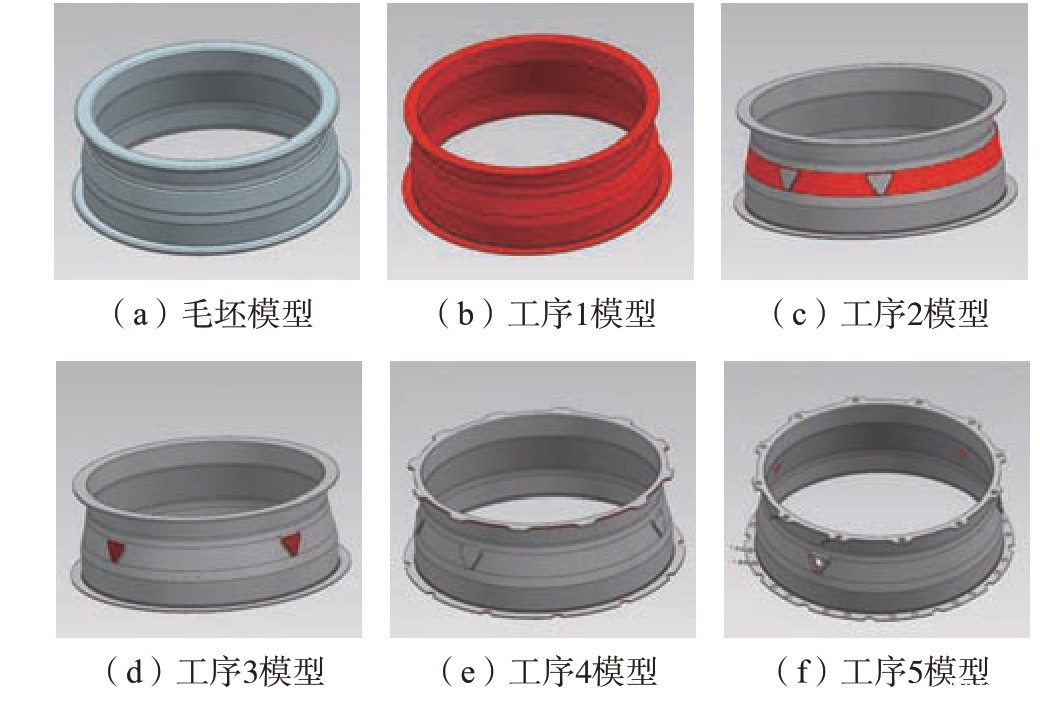 (2)通过工艺推理获得特征的加工步骤与余量,然后根据典型机匣工艺模板确定机匣零件工艺路线,自动构建三维工艺模型,典型机匣零件加工过程如图12 所示。