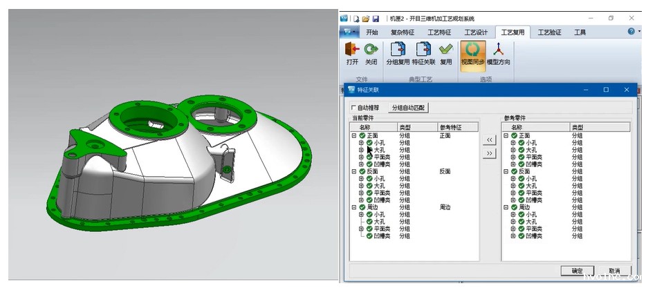 3DMPS 11.0在原有工艺复用功能上进行拓展,实现了特征分组后的快速关联与智能分配,可通过工艺复用直接将分组后的成组特征进行重用,极大的减少工艺人员工作量,规范工艺管理,也更符合实际工艺流程。