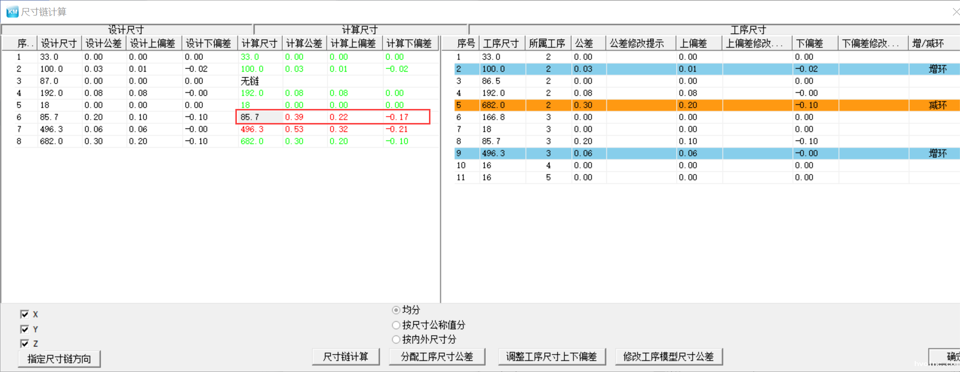 3DMPS工序尺寸链计算功能,可以自动获取尺寸链的组成环,自动识别工序模型的封闭环、增环、减环并进行尺寸链解算,并通过计算结果推荐优化建议。