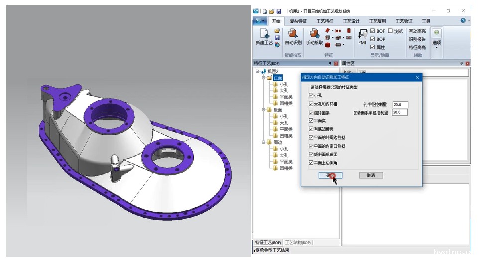 3DMPS基于MBD模型的特征识别功能,能够自动读取零件信息和各类复杂特征及交互式自定义特征的识别,为后续工艺决策提供数据支持。