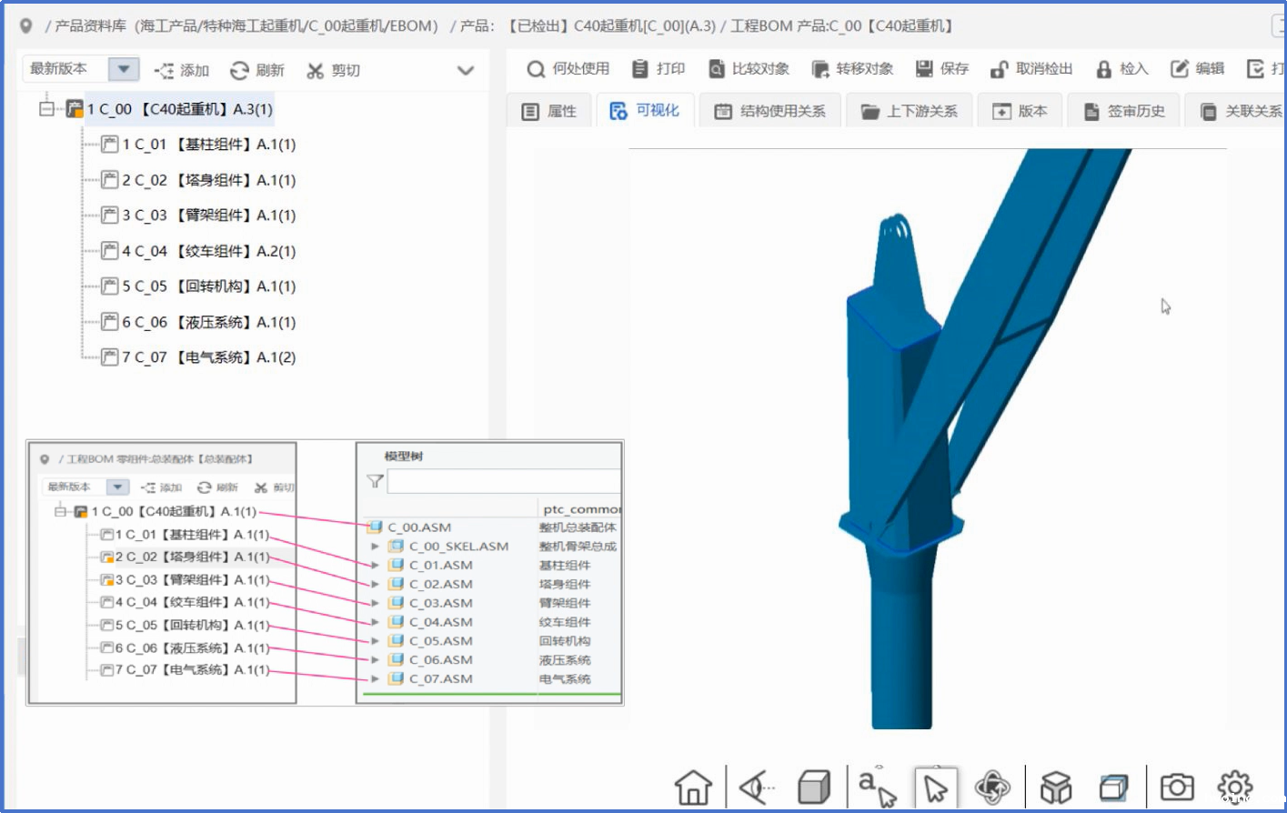 ◉基于三维装配结构自动生成CAD 文档结构及产品BOM结构,实现CAD 文档结构与BOM的关联管理