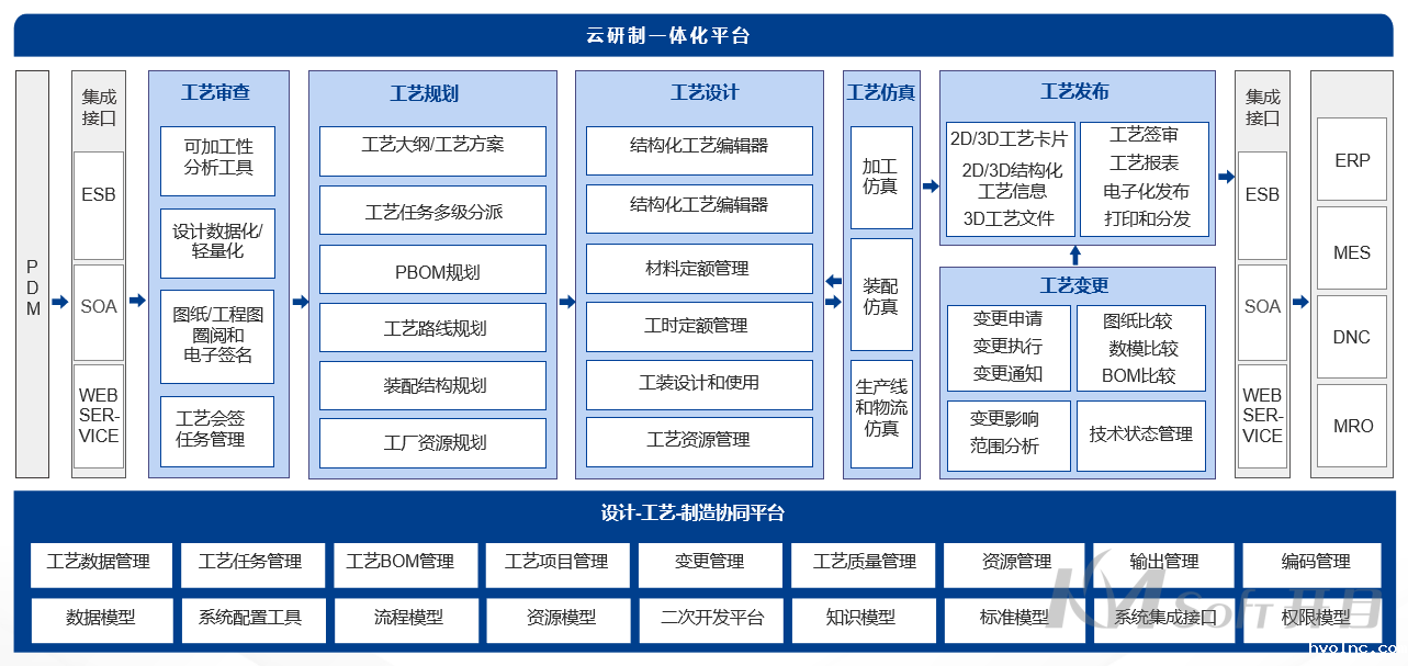 与PLM/MES/ERP以及设计和仿真工具的集成管理,承接上游设计数据,强化工艺桥梁作用,为下游生产提供业务所需的各类工艺要素,保证工艺数据的一致性、及时性及完整性;